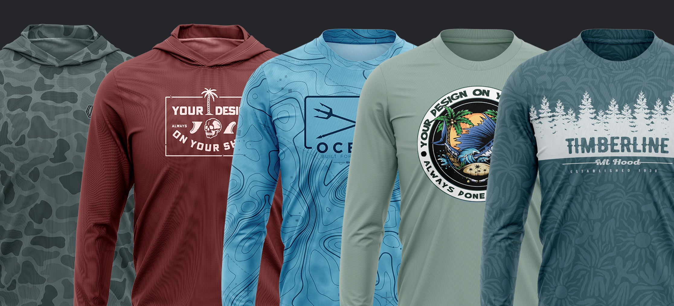 No blanks — Our shirts are built from scratch. No limitations. Choose prints, colors, and logo placements to match your exact vision.